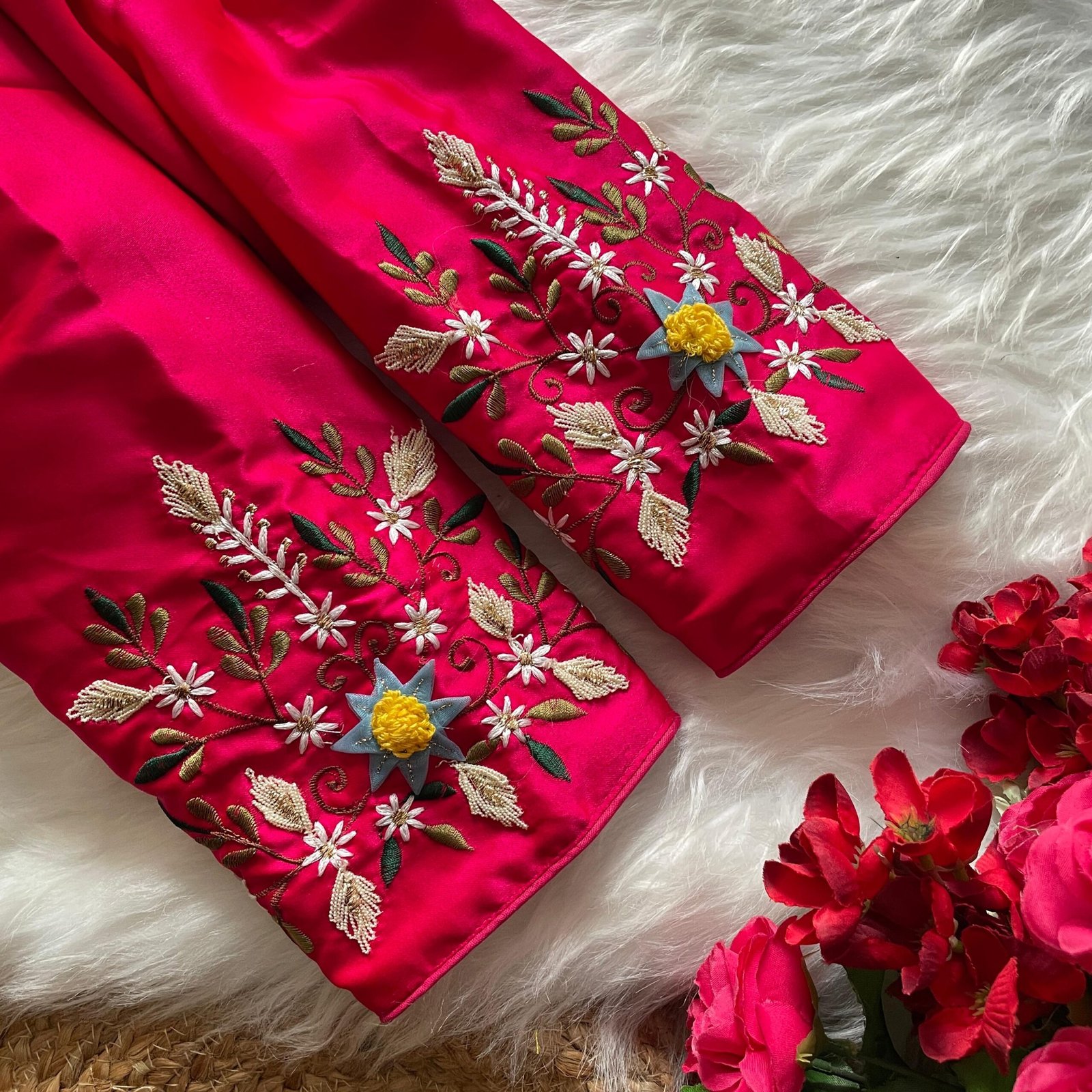 Fabric :- *pure silk with heavy pure hand embroidery thread +patch +khatli work*