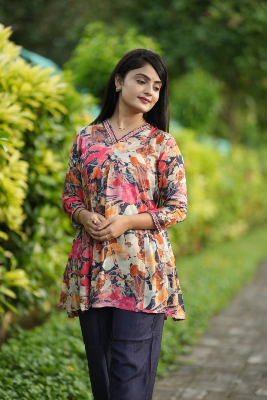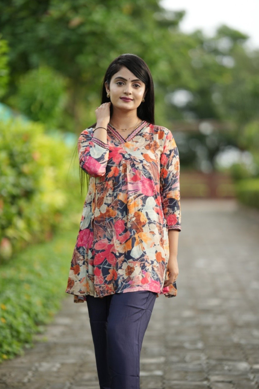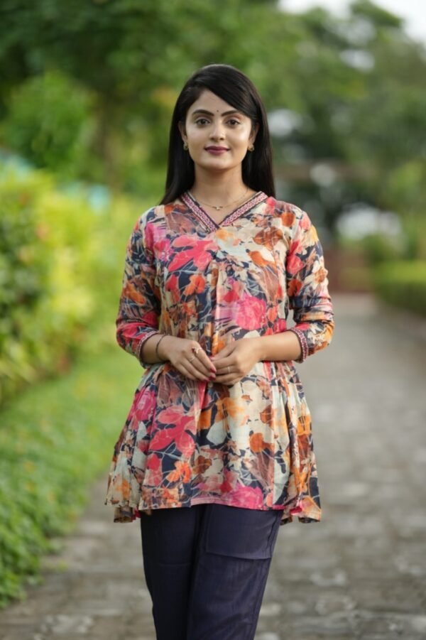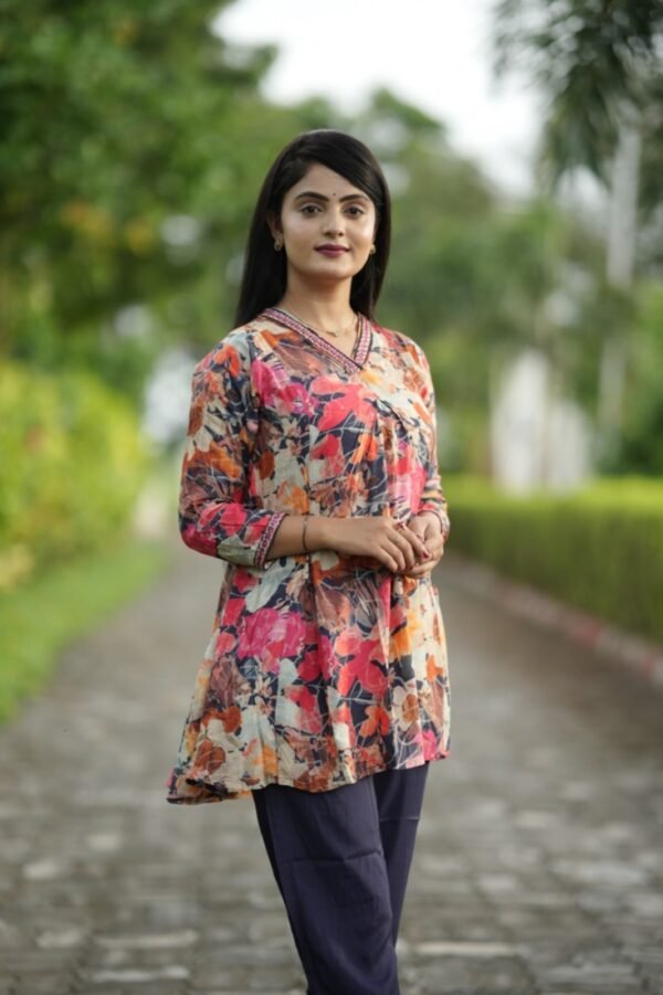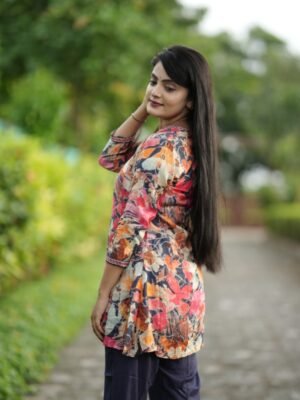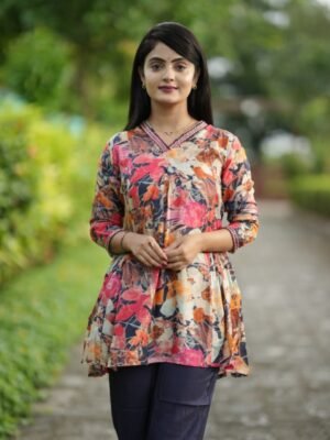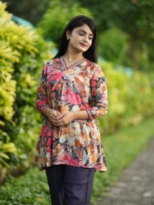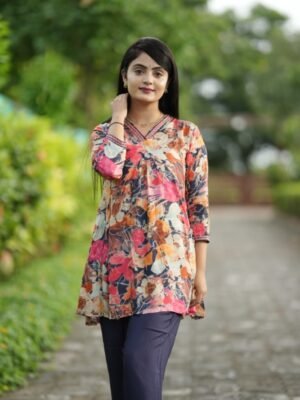 Stay on-trend with this Trendy Multicolor Coord Set, crafted from premium Pure Viscose Muslin for unmatched comfort and style. Featuring a fancy tunic top with a 31-inch length and elasticated bottoms with convenient side pockets, this fully stitched set is perfect for casual outings or semi-formal occasions. Elevate your wardrobe with this trendy, stylish outfit designed for the modern woman.